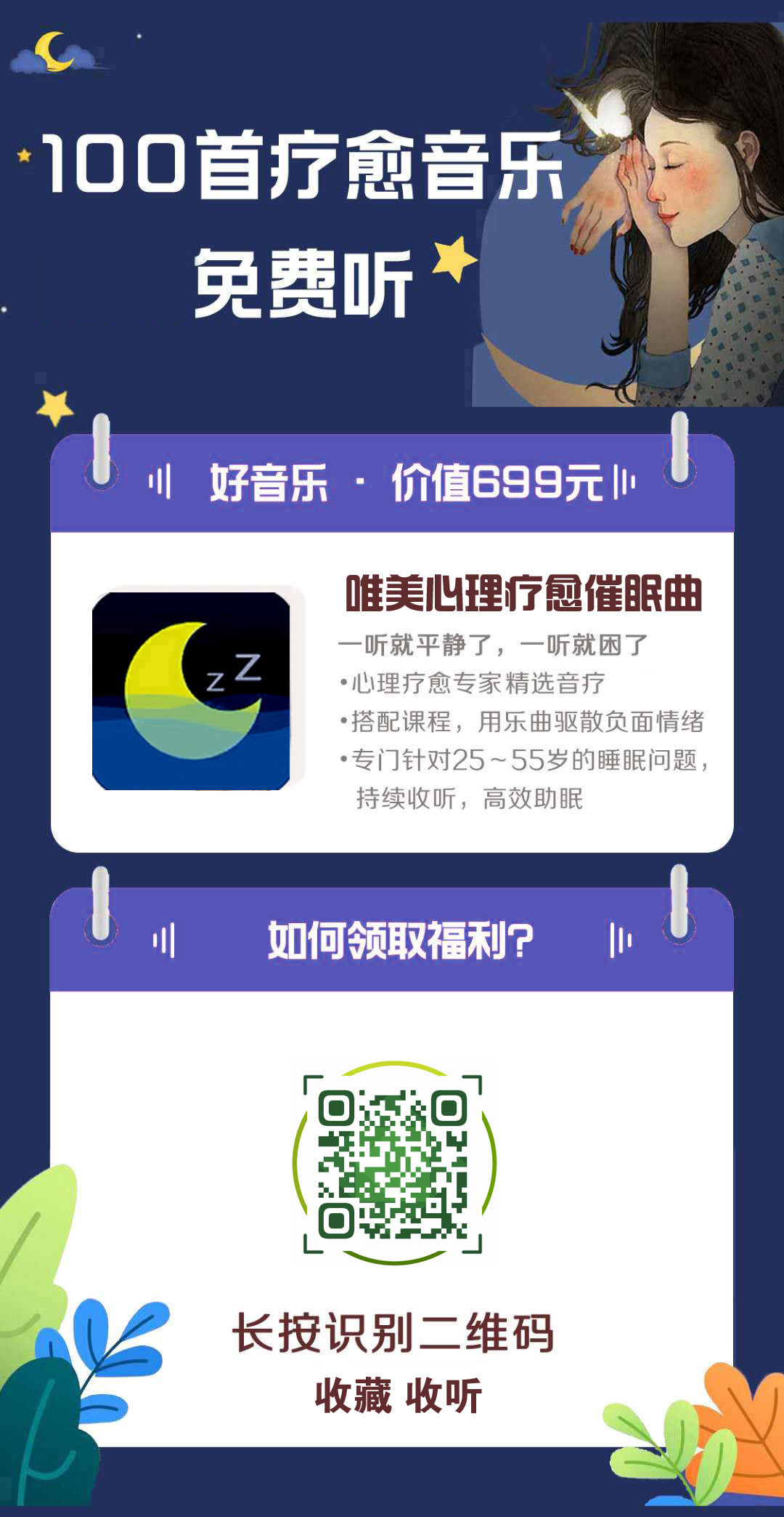 注:以上催眠音乐(有人声引导)可在手机上直接播放,